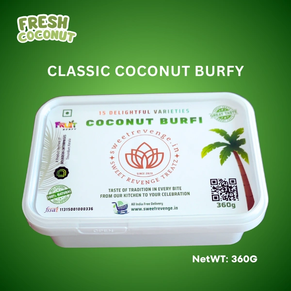Indulge in the timeless taste of our Premium Classic Coconut Burfi, made with freshly grated coconuts and slow-cooked to perfection for a soft, moist, and naturally fragrant sweetness. Each piece is crafted in small batches to ensure quality, purity, and authentic homemade flavor.