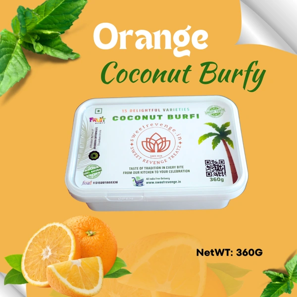 Indulge in the timeless taste of our Premium Orange Coconut Burfi, made with freshly grated coconuts and slow-cooked to perfection for a soft, moist, and naturally fragrant sweetness. Each piece is crafted in small batches to ensure quality, purity, and authentic homemade flavor.